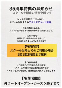 【スクール生限定】35周年記念アウトドアコート無料企画!!