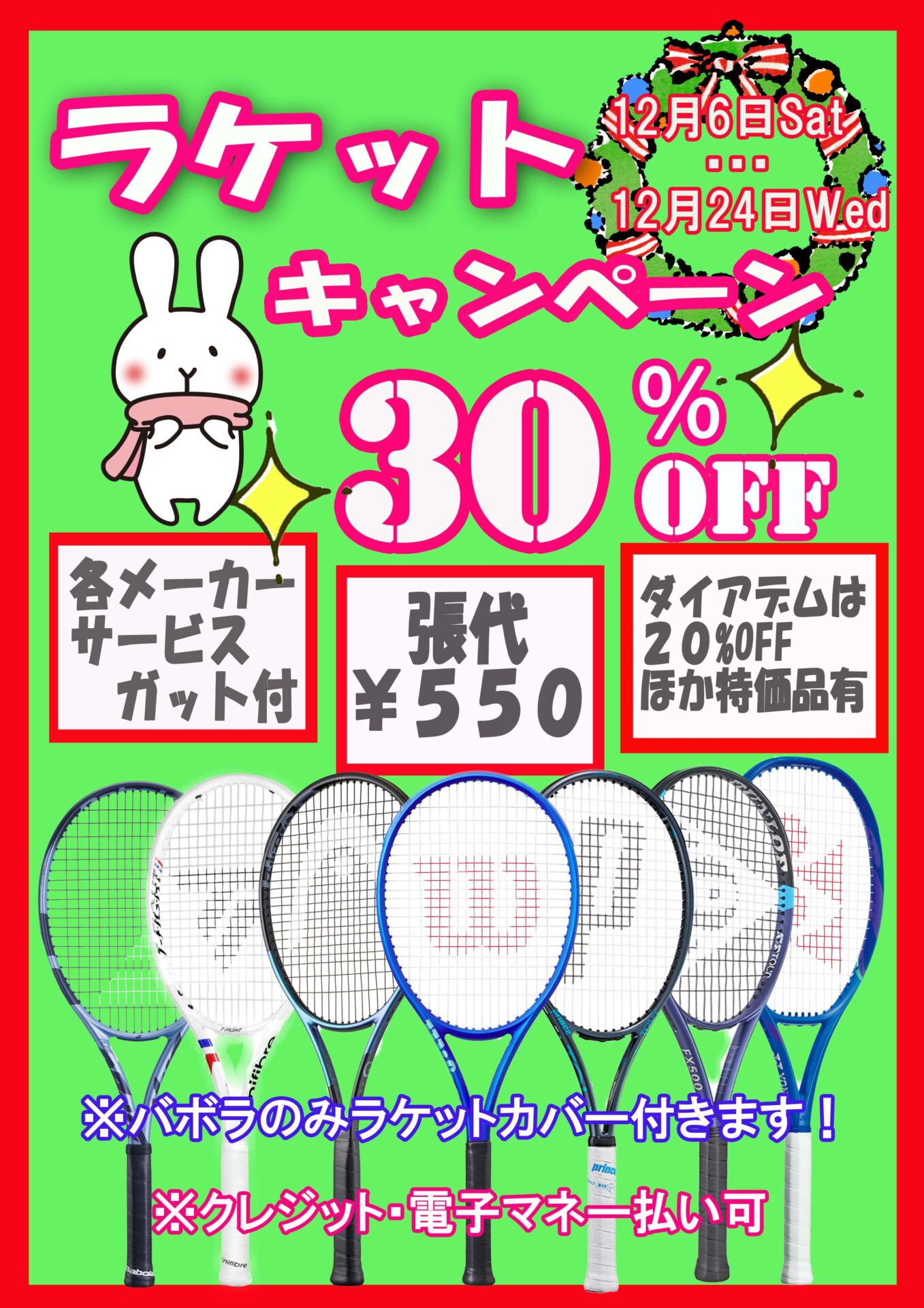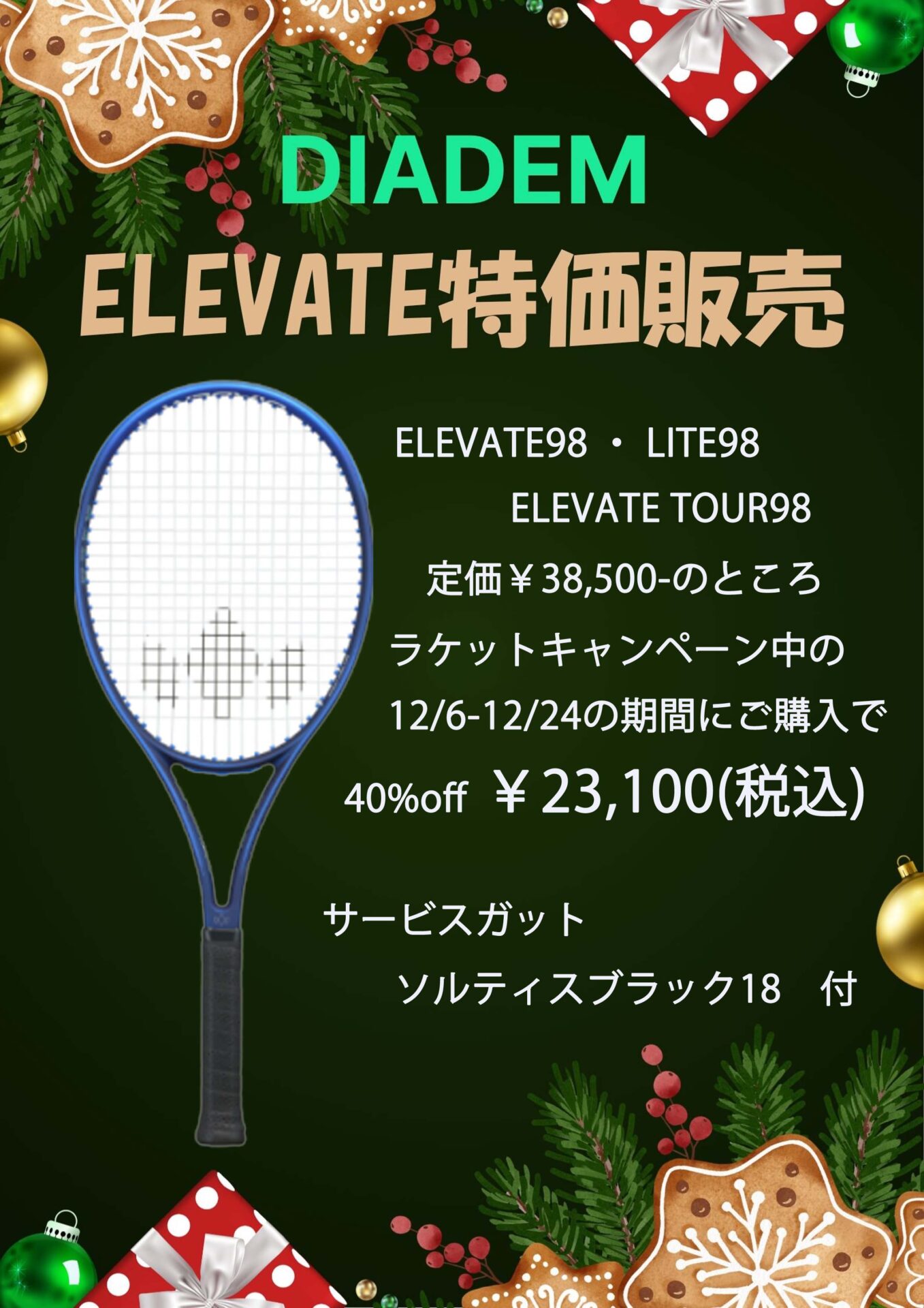 ラケット 30%OFF(ダイアデムは20%OFF)