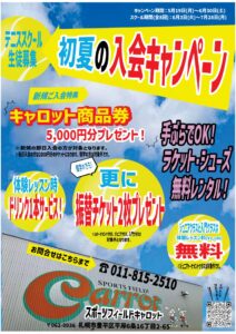 ・体験日即日入会で、キャロット商品券5,000円+振替チケット2枚