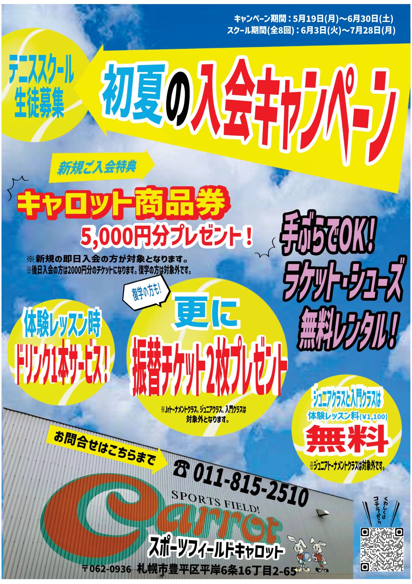 ・体験日即日入会で、キャロット商品券5,000円+振替チケット2枚