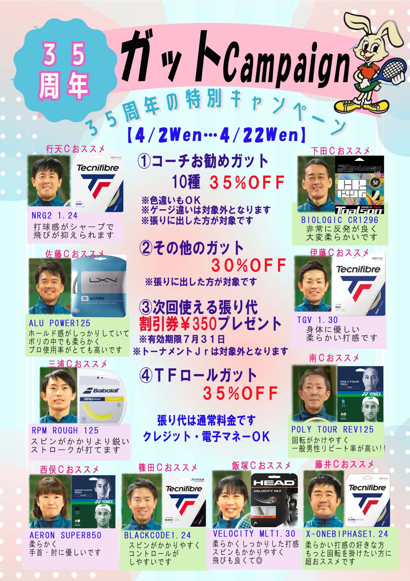 今回のガットキャンペーンは35周年特別キャンペーンです☆