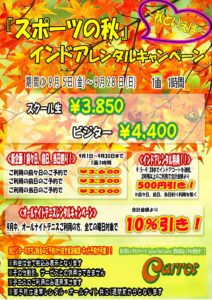 9月インドアレンタルキャンペーン開催☆