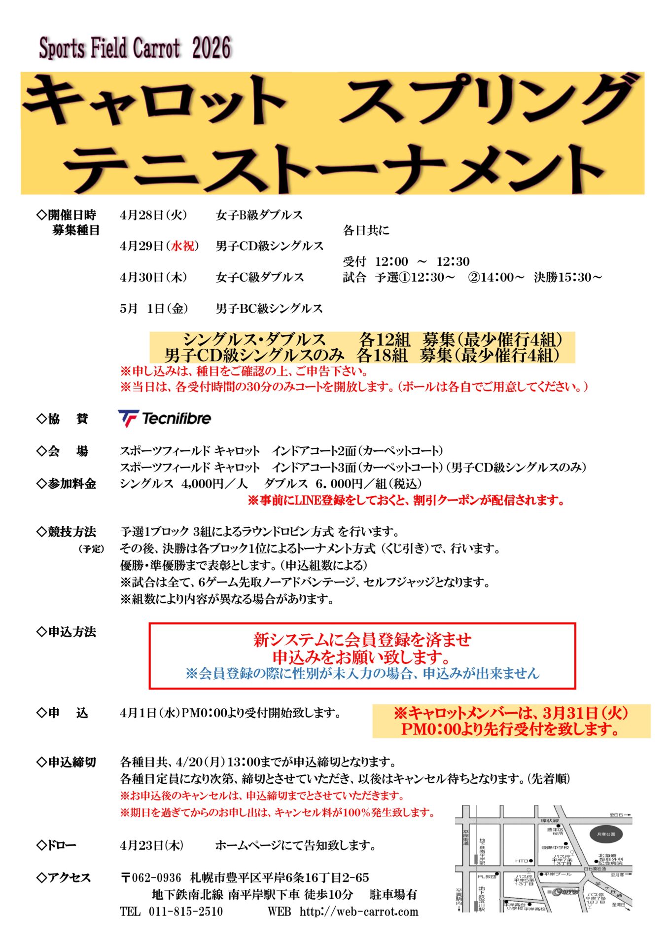 Pickup2026年3月25日CARROT スプリングテニストーナメント