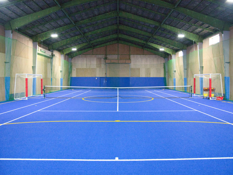 - サーフェイスは砂入り人工芝となっており、テニスと兼用仕様の関係上、若干滑る作りとなっております。